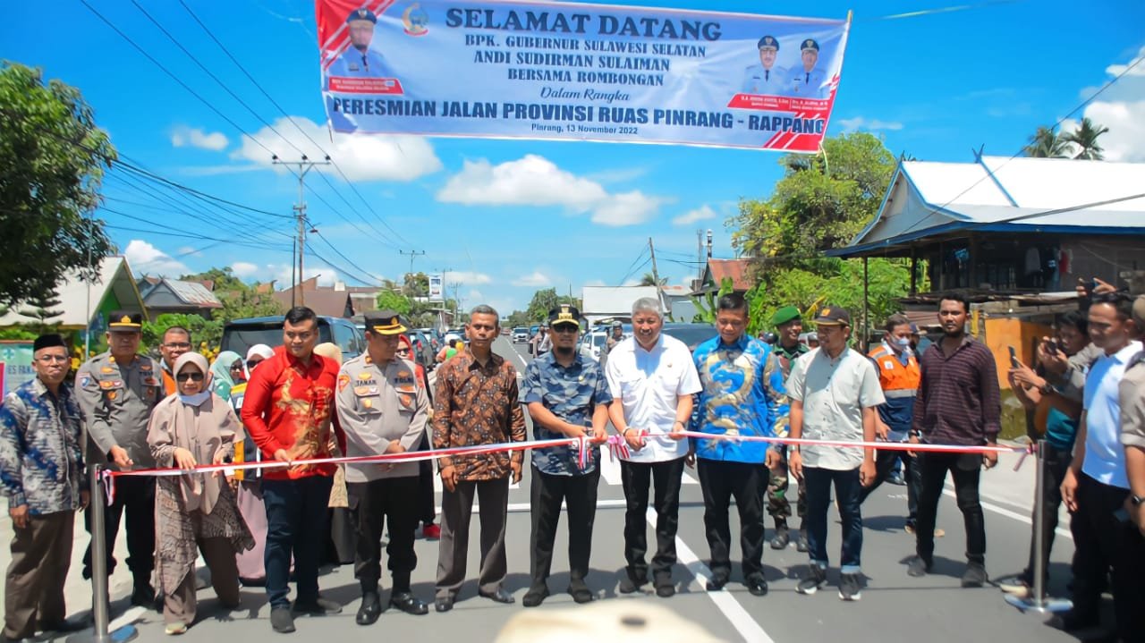 Peresmian hasil pembangunan Jalan Provinsi ini ditandai dengan pengguntingan pita oleh Gubernur di badan jalan poros Pinrang - Rappang.