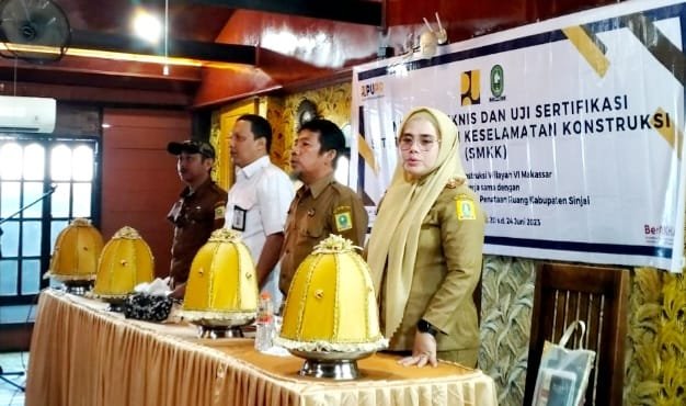 Dinas Pekerjaan Umum dan Perumahan Rakyat (PUPR) Sinjai menjalin kerjasama dengan Balai Jasa Konstruksi Wilayah VI Makassar menggelar bimbingan teknis (bimtek) dan uji sertifikasi sistem manajemen keselamatan konstruksi (SMKK).