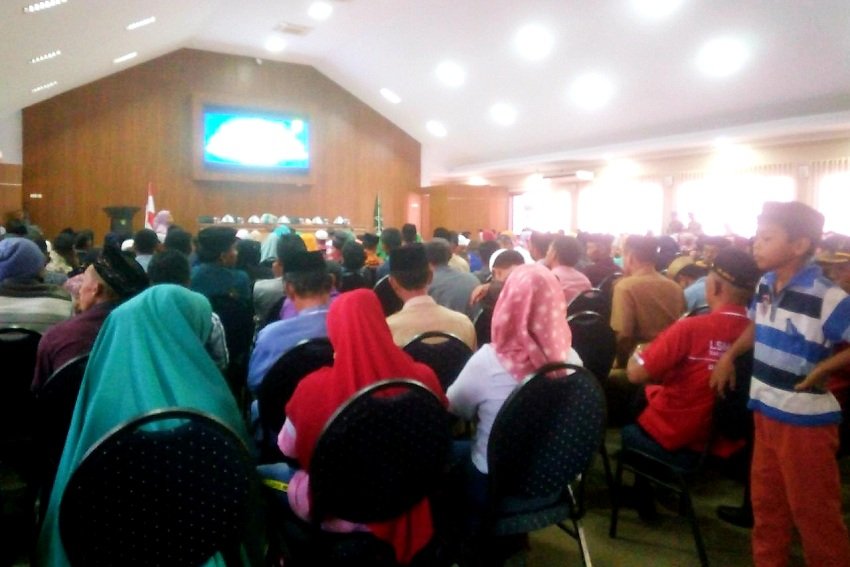 Ratusan warga Desa Pajukukang melakukan arak-arakan menuju kantor Bupati Maros untuk menyaksikan pelantikan Kepala Desa Pajukukang, Saharuddin oleh Bupati Maros, Senin (22/04/2019) pagi.