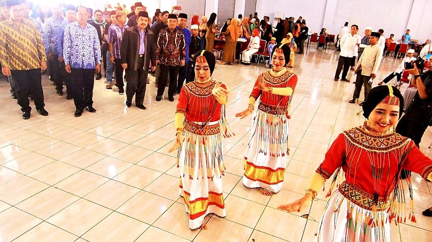 Rombongan Kafilah Kepulauan Selayar yang berjumlah sekitar 60 orang, disambut secara adat dan dijemput dengan tari Pagellu'.