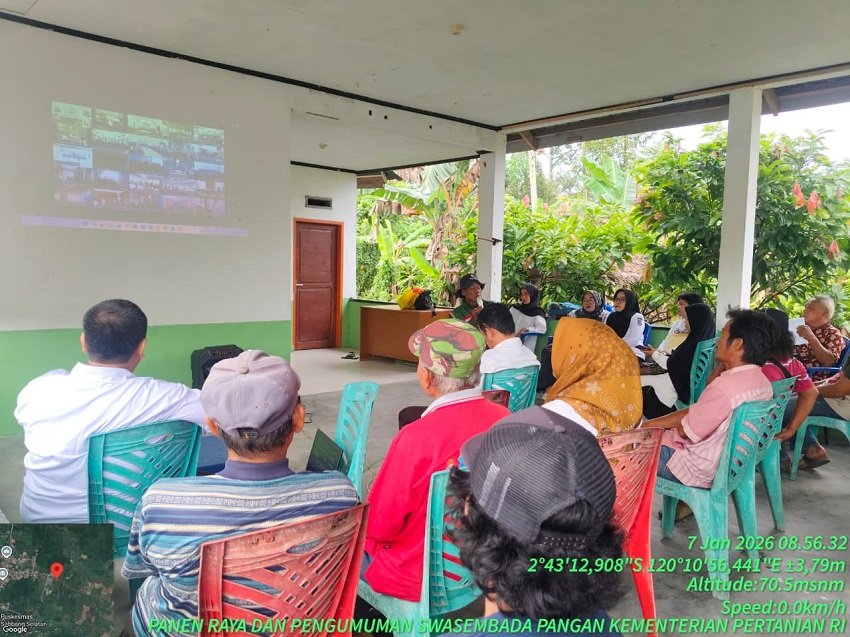 SOROTMAKASSAR -– LUWU UTARA, Balai Penyuluhan Pertanian (BPP) dan Pengurus Kelompok Tani (Koptan) Kecamatan Sabbang Selatan Kabupaten Luwu Utara (Lutra), Sulawesi Selatan (Sulsel) mengikuti zoom meeting panen raya secara langsung oleh Presiden RI bertempat di Kabupaten Karawang, Rabu (7/1/26).
