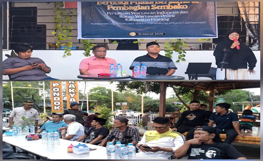 SOROTMAKASSAR -- PINRANG, Dua organisasi pers di Pinrang, Persatuan Wartawan Indonesia (PWI) dan Ikatan Wartawan Online (IWO) menggelar kegiatan diskusi dan Sharing terkait kolaborasi strategis pers dalam mendukung program pemerintah yang dikemas dalam acara Buka Puasa Bersama di Cafe and Resto Pondok Rakyat, Jalan Basuki Rahmat Pinrang, Kamis (19/3/2026).