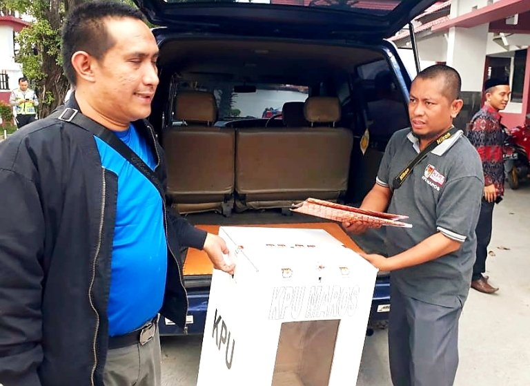Pendistribusian kotak suara itu diantar langsung oleh Ketua KPU Kabupaten Maros Samsu Rizal, SIP, MM bersama Komisioner dan Staf KPU Kabupaten Maros serta didampingi Ketua Komisioner Bawaslu Kabupaten Maros Sufirman, SIP.