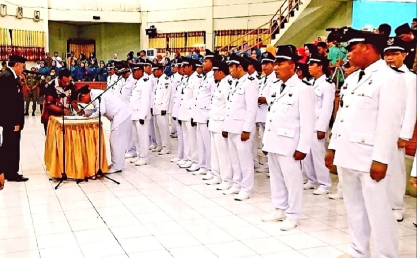 Pelantikan Kades dilaksanakan serentak baru kali ini terjadi, karena paradigma kerja sekarang harus efisien dan efektif disamping penghematan biaya.