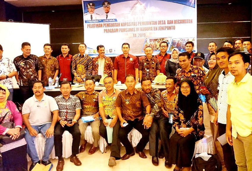 Pelatihan penguatan kapasitas aparat Pemerintah Desa dan Kecamatan Program Pamsimas III Kabupten Jeneponto Tahun 2019 yang berlangsung selama dua hari, ditutup oleh Kepala Dinas Pemerintahan Desa (Kadis Pemdes) Kabupaten Jeneponto, Amirullah di Hotel Palintaen, Kamis (20/06/2019).