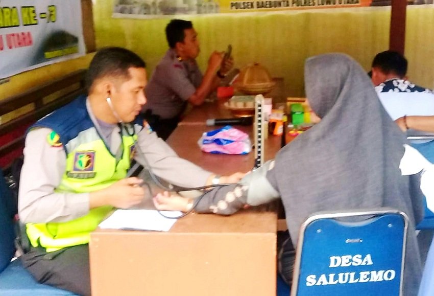 Jajaran Kepolisian Resor (Polres) Luwu Utara (Lutra), menggelar kegiatan Bakti Kesehatan berupa pelayanan pemeriksaan kesehatan dan pengobatan gratis, bertempat di Mapolsek Baebunta, Kamis (20/06/2019) kemarin.