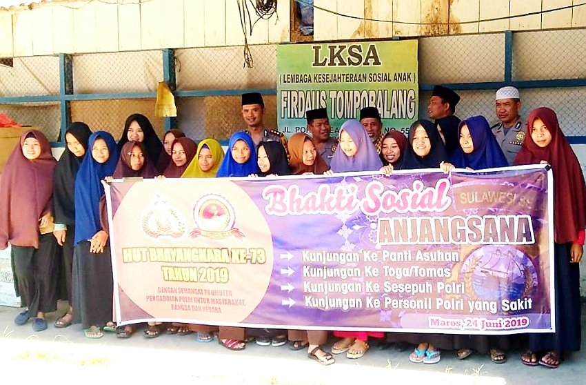 Menyambut Hari Bhayangkara ke-73, jajaran Polres Gowa melaksanakan kegiatan bakti sosial dengan melakukan kunjungan anjangsana ke Pesantren Firdaus Tompobalang di Lingkungan Tompobalang, Kelurahan Kalabbirang, Kecamatan Bantimurung, Kabupaten Maros, Jumat (21/06/2019) pagi sekitar pukul 10.00 Wita.