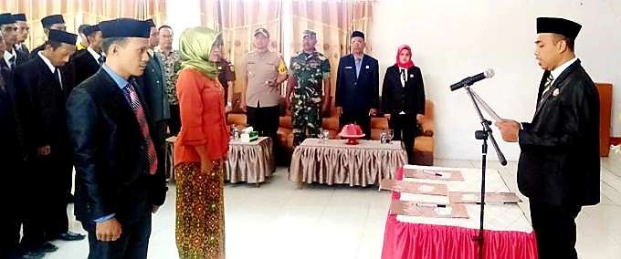 Pelantikan 33 Anggota Panwascam ditandai dengan pengambilan sumpah dan janji, serta penandatanganan berita acara pelantikan, disaksikan Sekda, Marjani Sultan serta anggota Muspida dan undangan lainnya.