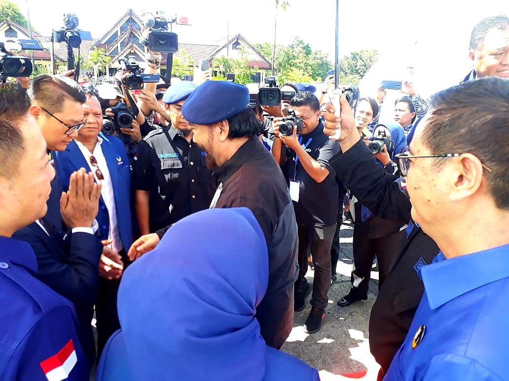 Surya Paloh dan rombongannya tiba dengan menumpang pesawat khusus type E135/PK-RJP yang terbang dari Bandara Halim Perdana Kusuma Jakarta dan diawaki Pilot Abdul Rahmat Manaur serta F/O Andi Bambang.