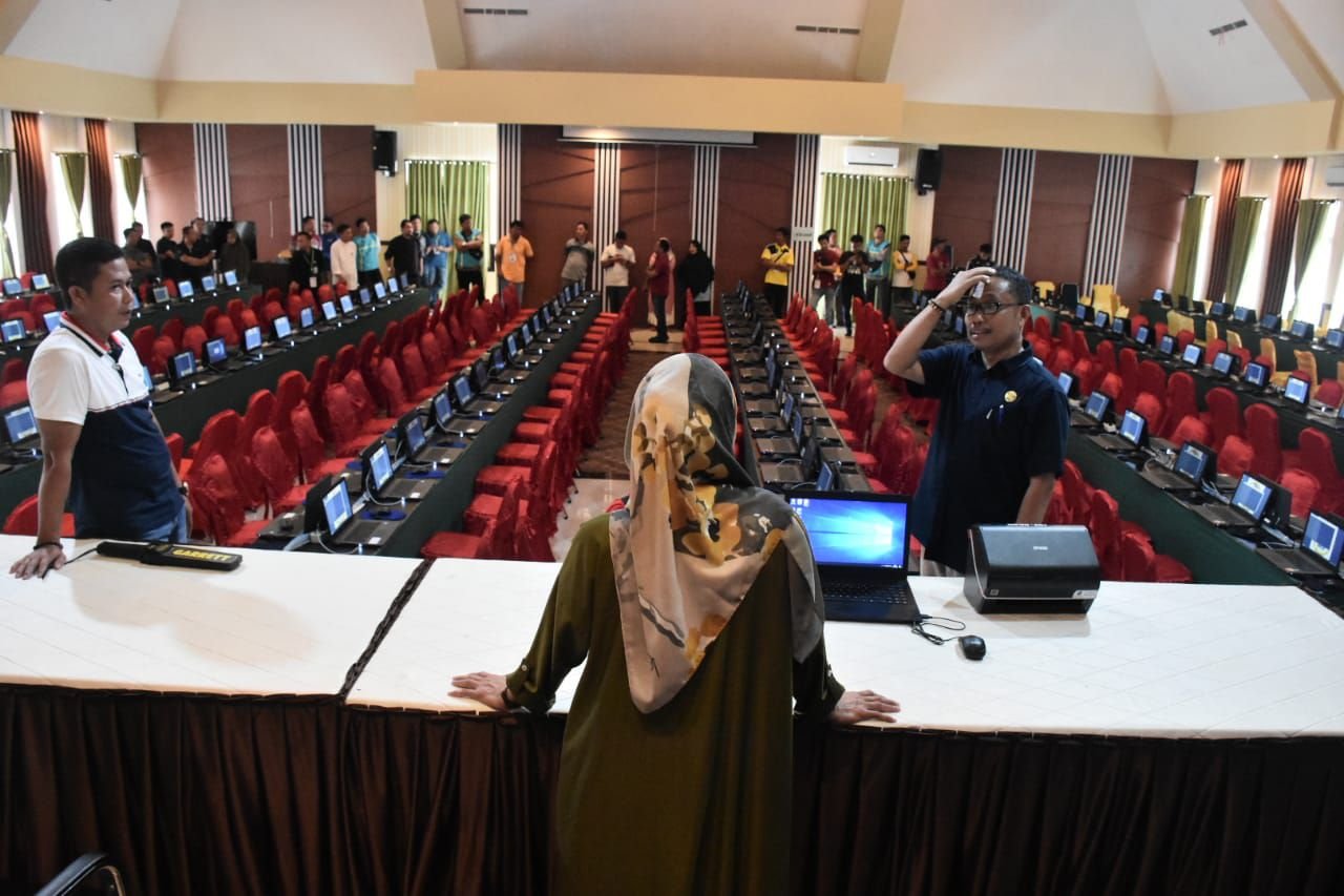 Wartawan media ini memantau tempat pelaksanaan di Aula Lagaligo, Jumat (14/2/2020), tampak fasilitas komputer dan sarana prasarana penunjang pelaksanaan tes sudah rampung disiapkan Pemerintah Kabupaten (Pemkab) Lutra dibawah komando Bupati Indah Putri Indriani dan Wakil Bupati Lutra Muh. Thahar Rum.