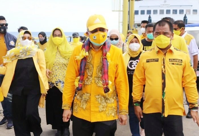 Ketua DPD I Partai Golkar Provinsi Sulawesi Selatan Andi Taufan Pawe tiba di Kepulauan Selayar melalui Pelabuhan Pamatata, Minggu (14/02/2021).