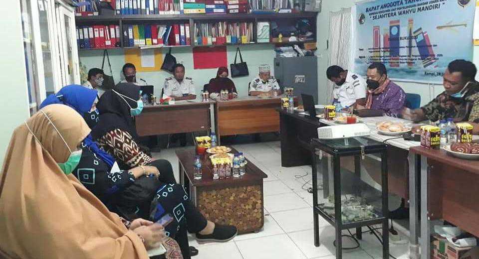 Kepala Dinas Perdagangan Perindustrian Koperasi Usaha Kecil Menengah (P2KUKM) Kabupaten Luwu Utara, Drs H. Muh Kasrum Patawari M.Si menghadiri Rapat Anggota Tahunan (RAT) tahun buku 2020 di Koperasi Sejahtera Wahyu Mandiri di Kantor Bandara Kelas III Rampi, Kamis (28/1/2021).