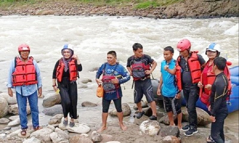 Dalam suasana New Normal, Bupati Toraja Utara Kalatiku Paembonan ikut berwisata dengan melakukan arung jeram di objek wisata Rafting, Kelurahan Paku, Kecamatan Dende Piongan Napo (Denpina), Toraja Utara, Sulawesi Selatan.