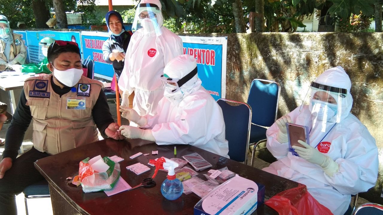 Dinas Kesehatan Kabupaten Maros bersama Puskesmas Kecamatan Turikale, Sabtu (30/5/2020) sekitar pukul 09.00 Wita, melaksanakan rapid test di Pasar Pelelangan Ikan (PPI) Labuang, Kecamatan Turikale, Kabupaten Maros, Sulawesi Selatan (Sulsel).