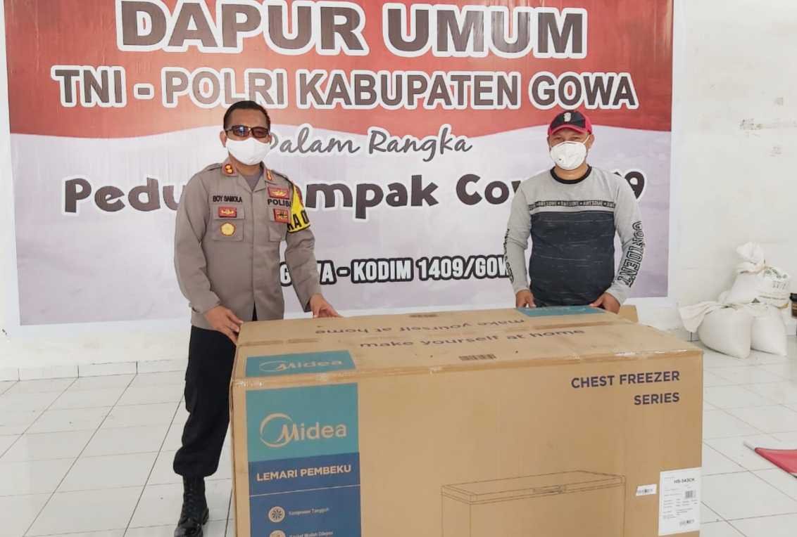 Untuk mendukung dapur umum yang telah resmi dibuka Polres Gowa dan Kodim 1409 Gowa beberapa hari lalu guna menyiapkan makanan siap saji kepada warga masyarakat terdampak Covid-19, berbagai pihakpun mulai ikut memberikan bantuannya.