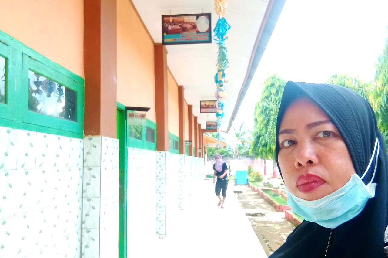 Kepala UPT SDN 008 Dandang, Kecamatan Sabbang Selatan, Kabupaten Luwu Utara (Lutra) menerina instruksi dan bantuan disinfektan untuk melakukan penyemprotan di area sekolahnya.