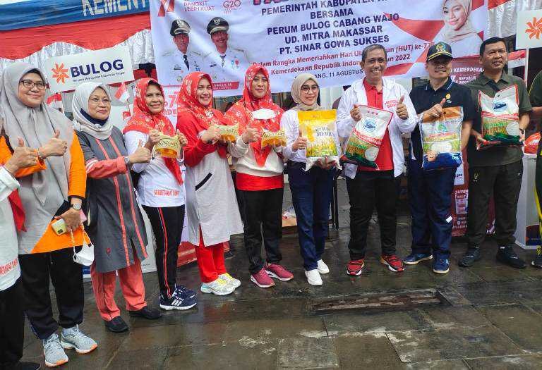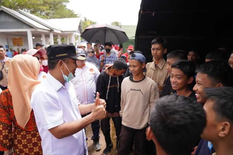 Gubernur Sulawesi Selatan, Andi Sudirman Sulaiman membagikan satu unit motor dan 5 unit sepeda untuk peserta jalan sehat Gerakan Sulsel Anti Mager di Lapangan Bakunge, Desa Mappesangka, Kecamatan Ponre, Sabtu, 13 Agustus 2022.