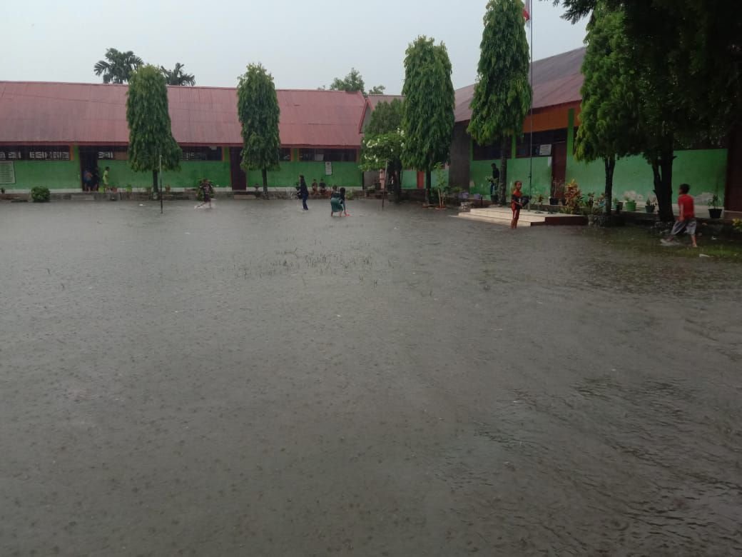 Hujan deras yang mengguyur Luwu Utara dan sekitarnya, Kamis(5/3/2020) sore, membuat sejumlah kawasan terendam air. Sekolah Dasar Negeri(SDN) 027 Limpomajang pun tak luput dari genangan air akibat sistem drainase yang tidak berfungsi.