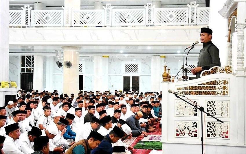 Masyarakat Kabupaten Gowa memenuhi Masjid Agung Syekh Yusuf untuk mengikuti Dzikir Akbar dalam rangka Refleksi 4 Tahun Kepemimpinan Bupati Gowa, Adnan Purichta Ichsan dan Wakil Bupati Gowa, H. Abd Rauf Mallaganni Kr Kio, Senin (17/02/2020) malam.
