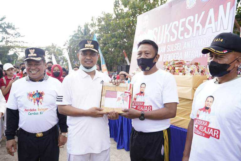 Gubernur Sulawesi Selatan, Andi Sudirman melepas peserta jalan sehat Gerakan Sulsel Anti Mager di Lapangan Tagari, Kota Rantepao, Kabupaten Toraja Utara, Jumat, 5 Agustus 2022.