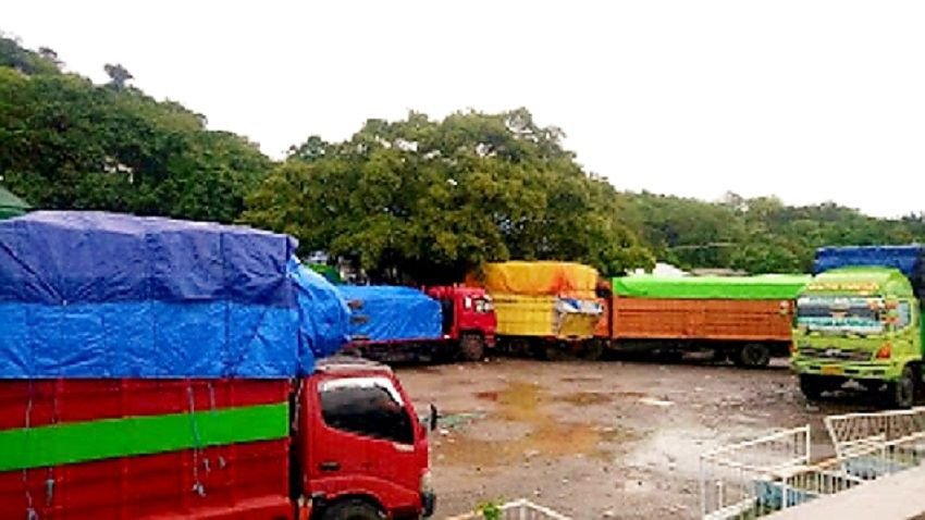 Akibat Cuaca Buruk Mobil Truk Pengangkut Barang Tertahan di Pelabuhan Bira