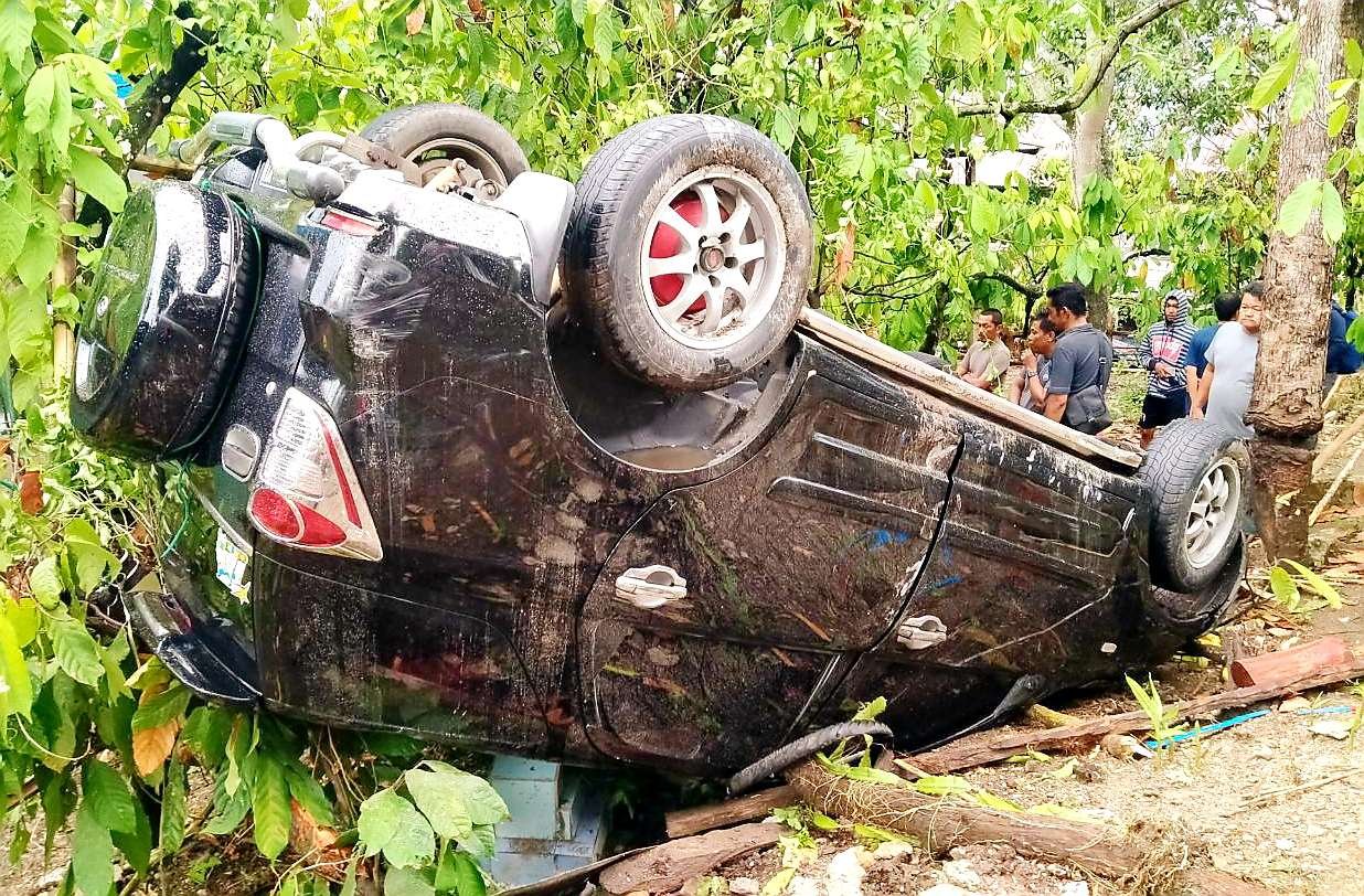 Stir Tidak Berfungsi, Mobil Terios Terguling dan Terbalik di Jalan Poros Maros - Bone