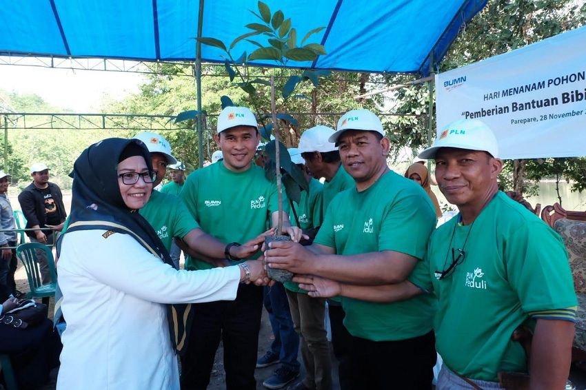 Bentuk kepedulian menjaga lingkungan hidup dan meningkatkan ekonomi masyarakat, PLN UIW (Unit Induk Wilayah) Sulselrabar bekerjasama Ikatan Keluarga Mahasiswa Parepare (IKMP), berpartisipasi di Hari Penanaman Pohon dengan memberikan bantuan 1.500 bibit pohon produktif, Kamis (28/11/2019).