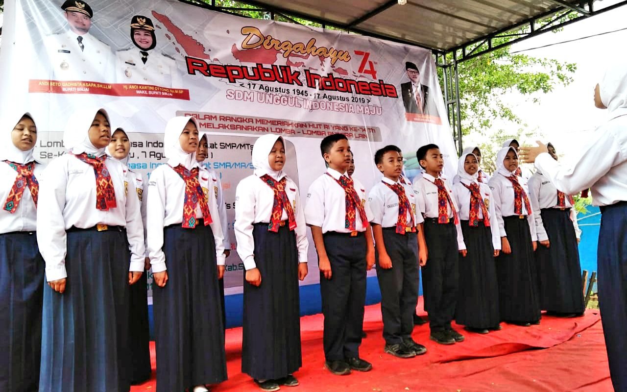 Lomba gerak jalan indah dan drum band antar sekolah tingkat SD, SMP dan SLTA meriahkan Hari Ulang Tahun ke-74 Republik Indonesia tingkat Kabupaten Kepulauan Selayar, Selasa (13/08/2019).