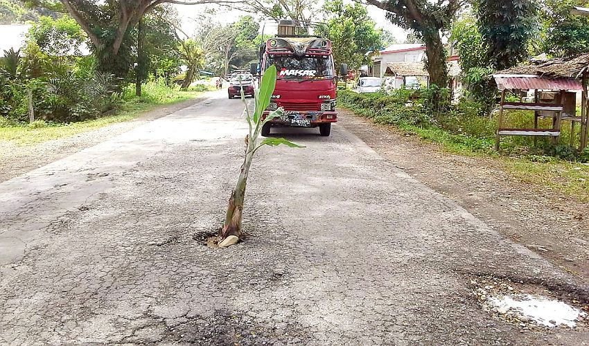 Warga Desa Kampung Baru, Kecamatan Sabbang Selatan, Kabupaten Luwu Utara (Lutra), memprotes Pemerintah Provinsi Sulawesi Selatan (Sulsel) terkait rusaknya jalan Trans Sulawesi di desa mereka dengan cara menanami pohon pisang di tengah jalan.