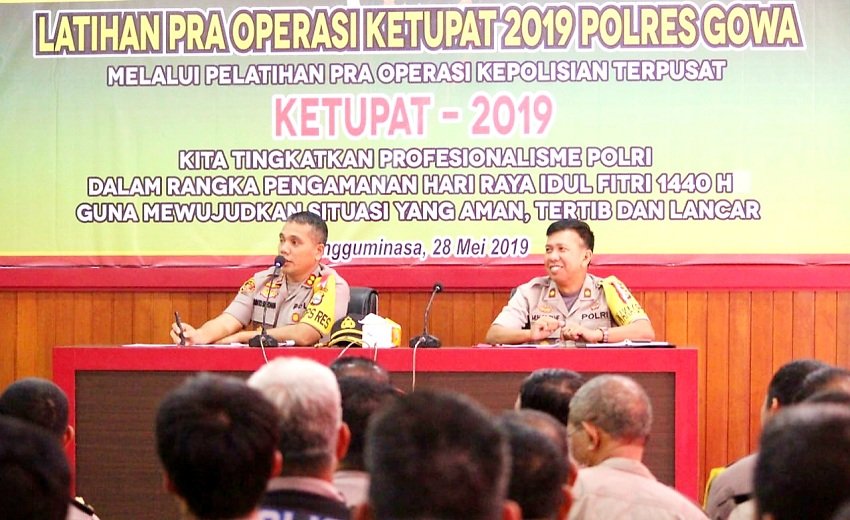 Bertempat di Aula Endra Dharmalaksana, pada Selasa (28/05/2019) jajaran Polres Gowa menggelar kegiatan Latihan Pra Operasi Ketupat 2019.