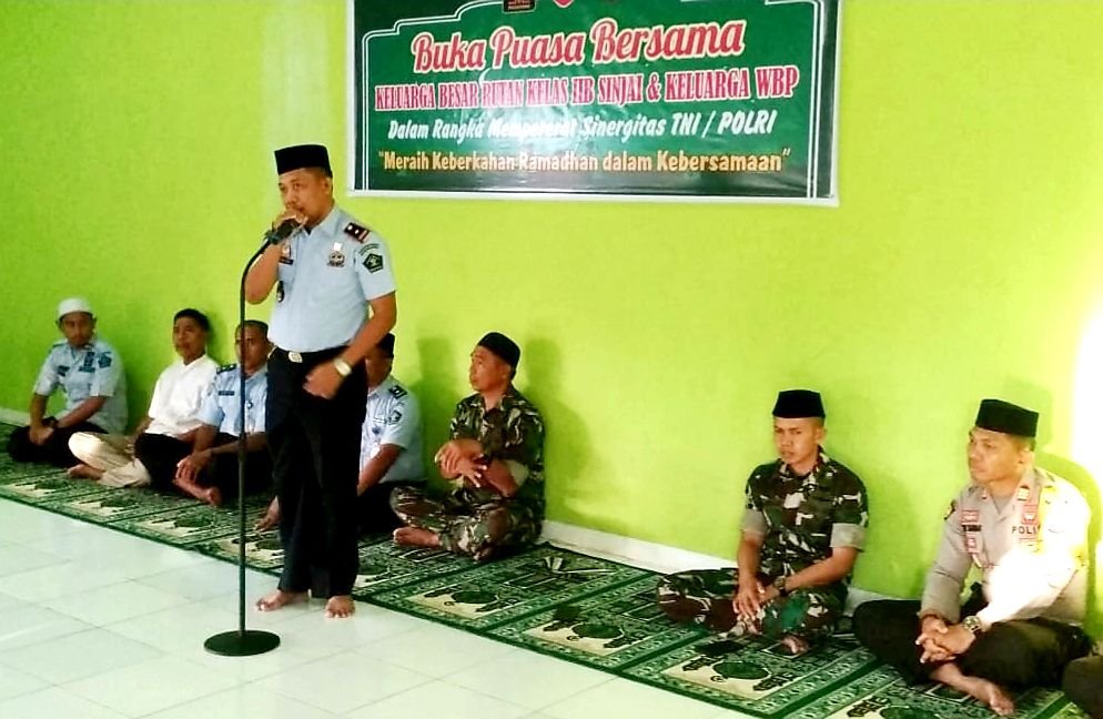 Rutan Kelas IIB Sinjai mengadakan buka puasa bersama TNI-Polri dan warga binaan bertempat di Masjid Babuttaubah Rutan Sinjai, Kamis (23/05/2019).