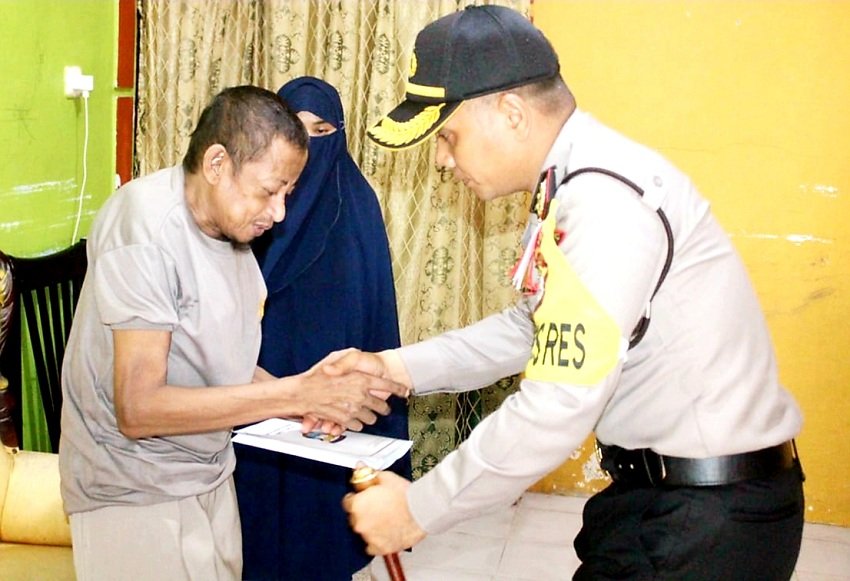 Suasana penuh haru nampak menyelimuti kunjungan besuk Kapolres Gowa AKBP Shinto Silitonga, SIK, MSi ke salah satu anggotanya yang tengah sakit yakni Brigpol Hasrin, di rumahnya di BTN Amaliah Residence Pallangga, Kamis (23/05/2019) sore.