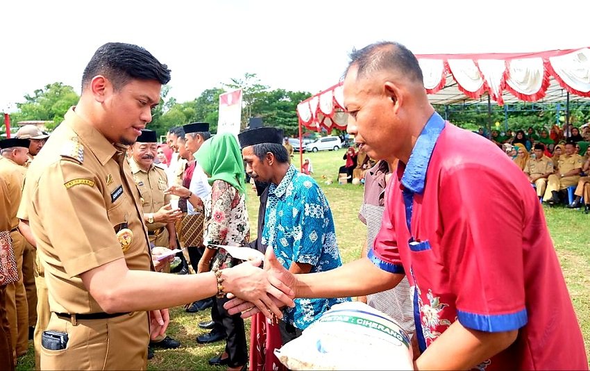 Bupati Gowa Adnan Purichta Ichsan didampingi Wakil Bupati Gowa Abd. Rauf Malaganni menyerahkan sejumlah alat-alat pertanian kepada Gabung Kelompok Tani (Gapoktan) di sela-sela kunjungan kerja (Kunker) di Lapangan Kantor Desa Pattallassang, Kecamata Pattallassang.