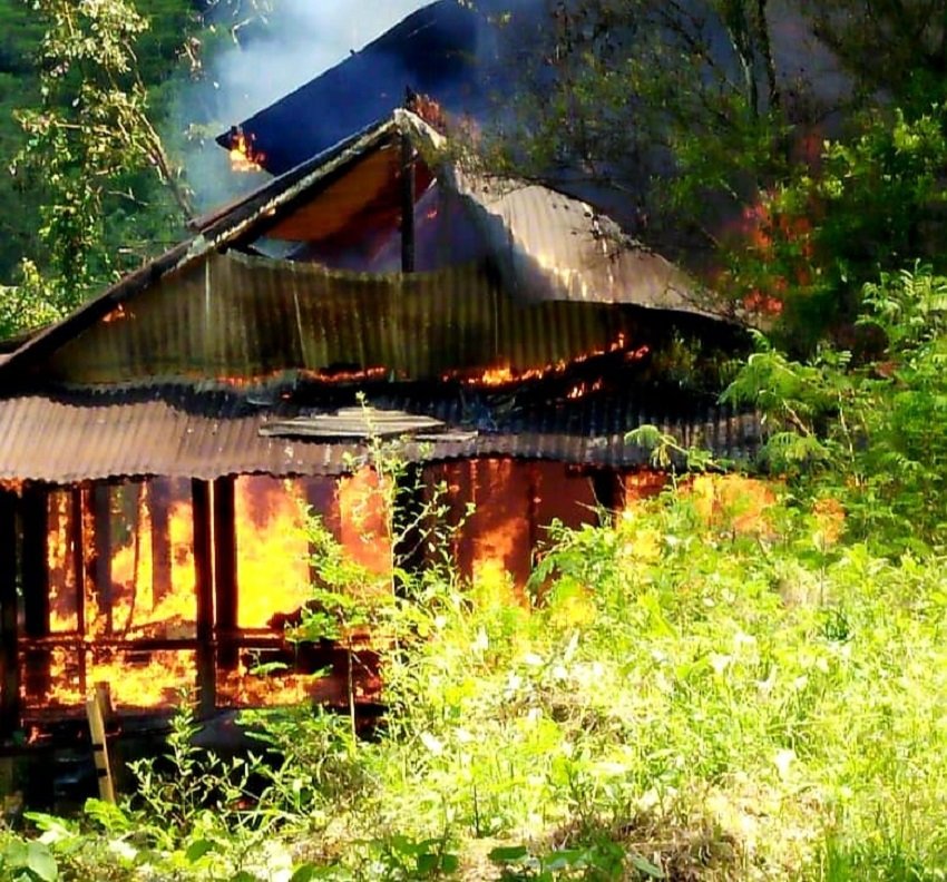 Dua buah rumah warga di Dusun Sarong, Lembang Sarapeang, Kecamatan Rembon ludes terbakar dilahap si jago merah, Kamis (07/04) siang.