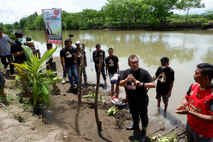 Profesional dan pemerhati Kabupaten Takalar, Mohammad Firdaus Dg Manye, menggerakkan sejumlah komunitas dan warga melakukan aksi peduli lingkungan di Dusun Sapanjang, Desa Bontoloe, Kecamatan Galesong, Kabupaten Takalar, Minggu (28/11/2021).
