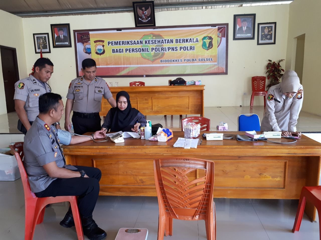 Seluruh personel Polres Luwu Utara (Lutra) Polda Sulawesi Selatan (Sulsel) melakukan pemeriksaan kesehatan (Rikkes) berkala yang diadakan oleh Biddokes Polda Sulsel yang bekerja sama dengan Paur Kes Polres Lutra, Aipda Sail Hidayat di Aula Polres Lutra, Kamis (20/2/2020).