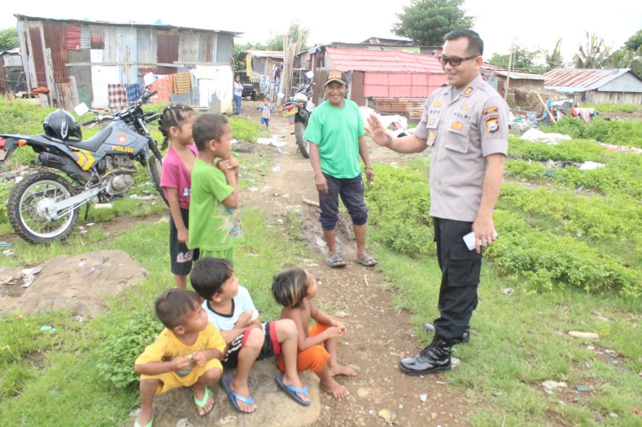 Tidak hanya itu, terlihat para anak-anak itu pun tanpa pamrih dan rasa takut hingga gembira melihat kehadiran Polisi di hadapanya.