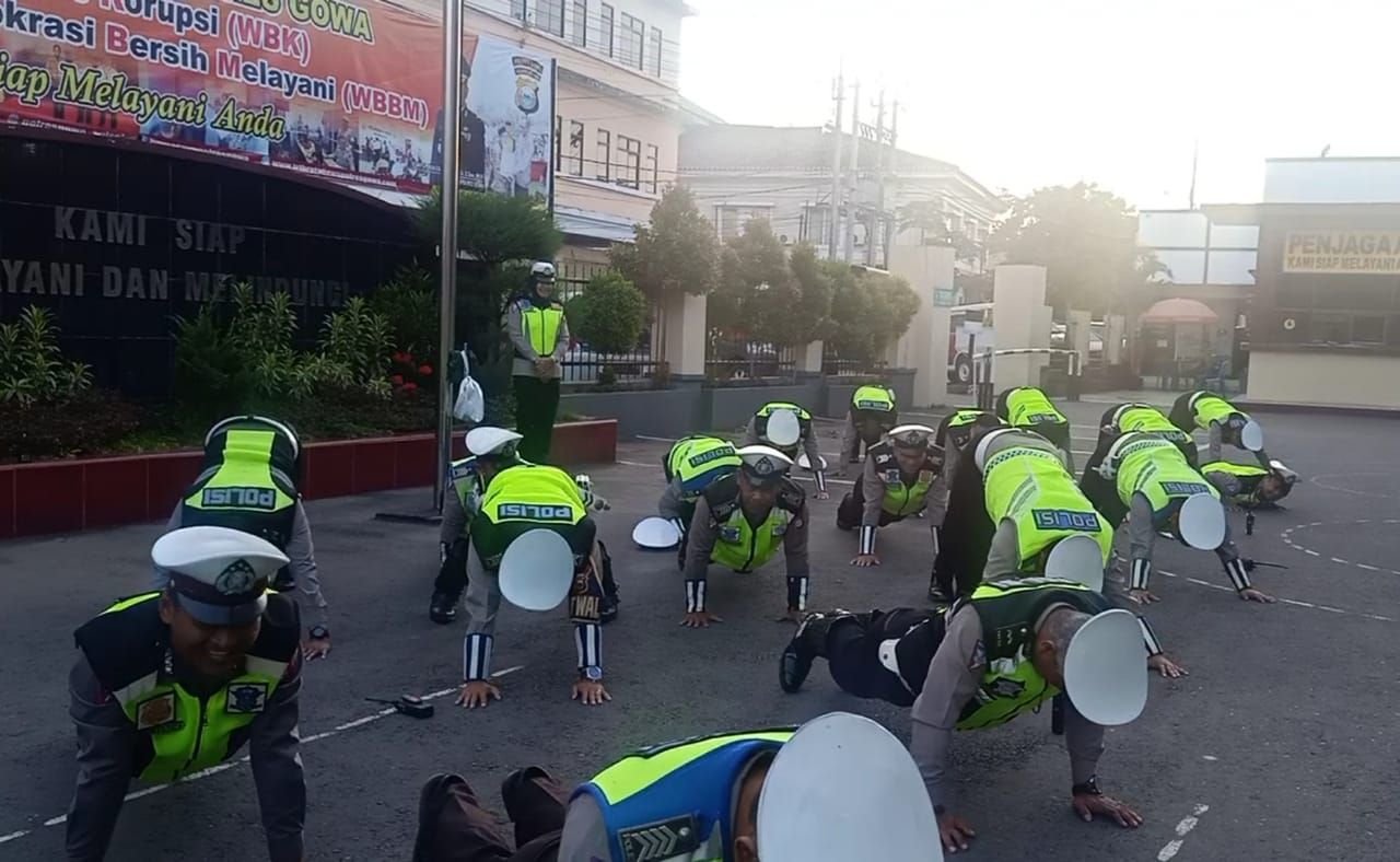 Ditambahkan, latihan ini rutin dilakukan seminggu dua kali dan diikuti seluruh personel Satlantas Polres Gowa. Personel yang terlambat dihukum dua kali lipat lebih berat dari yang dilakukan personel lain.