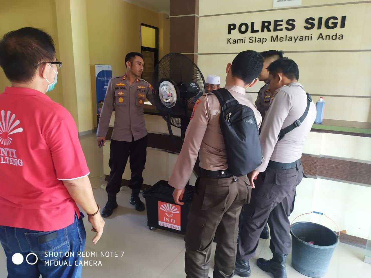 Setelah diterima alat itu, Kapolres Sigi langsung memerintahkan anggotanya untuk mengisi cairan disinfektan. Kemudian kipas itu menyemburkan cairan.