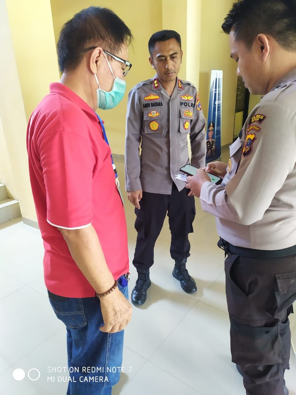 Andi Batara sangat familiar menerima Rudy dan Tasman. Sebelumnya ia menerima tamunya itu di ruang kerjanya. Bahkan ia menceritakan, ketika ke Mapolda Sulteng sudah ada ruang sterilisasi. Makanya, ia sangat senang menerima bantuan yang siap pakai itu.