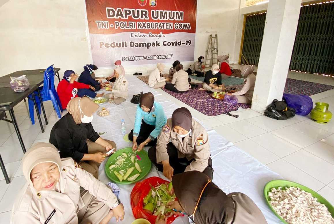 Sebagai bentuk kepedulian kepada masyarakat kecil dari dampak adanya virus Corona atau Covid-19, Polres Gowa dan Kodim 1409 Gowa bersama-sama membuka dapur umum.