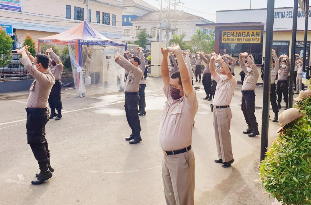 Salah satunya seperti yang dilakukan pagi ini usai pelaksanaan apel pagi. Polres Gowa gelar senam pagi bersama yang dipimpin oleh pelatih jasmani Polres Gowa, Iptu Aslamuddin di halaman Mapolres, Jumat (17/04/2020).