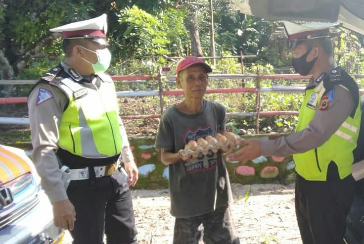“Sebelumnya kami data warga kurang mampu, baik itu tukang ojek, petani. Kita sudah koordinasi dengan Bhabinkamtibmasnya. Sementara ini kita bagikan ke 10 KK yang dinilai kurang mampu secara ekonomi untuk meringankan beban hidup mereka,” kata Kasatlantas.