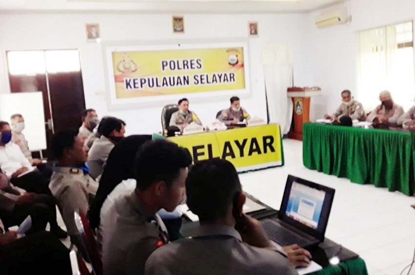 Bertempat di Ruang data Mako Polres Kepulauan Selayar Jln. W.R. Monginsidi No 2 Benteng, Kabupaten Kepulauan Selayar berlangsung Rapat Anev minggu ke-IV bulan April 2020 terkait masalah situasi kamtibmas di wilayah hukum Polres Kepulauan Selayar, Senin (27/04/2020).