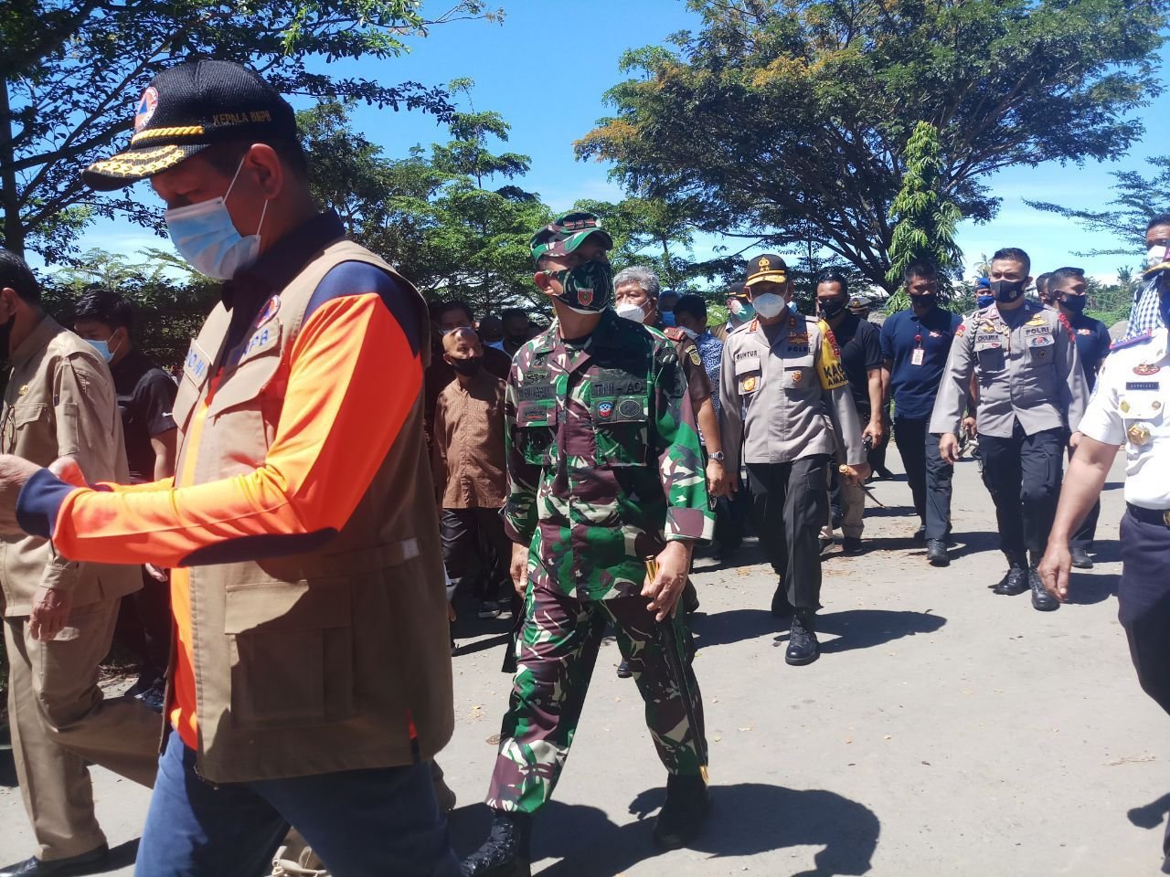 Kedatangan Kepala BNPB yang didampingi Pangdam XIV/Hasanuddin disambut Danrem 142/Tatag Brigjen TNI Firman Dahlan, S.I.P bersama Bupati Lutra Hj. Indah Putri Indriani, S.IP, M.Si bersama Forkopimda Luwu Utara, selanjutnya ke Kantor Bupati Lutra untuk melakukan penyerahan bantuan secara simbolis oleh Kepala BNPB kepada Bupati Lutra untuk korban bencana banjir bandang.