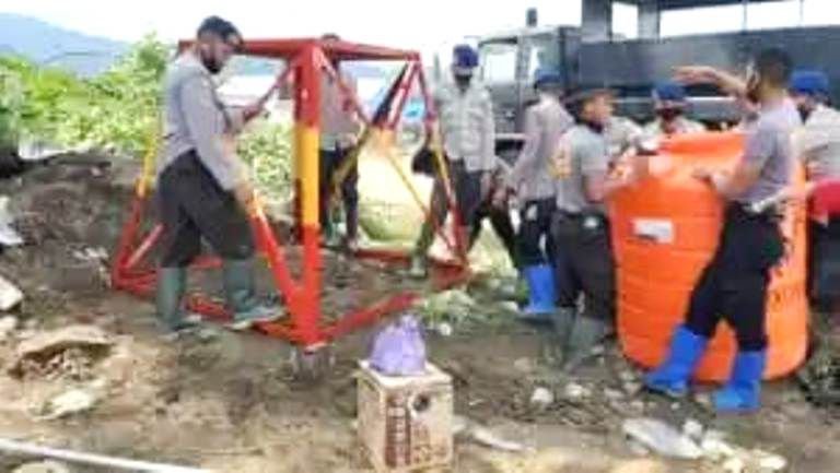 Satuan Brimob Polda Sulawesi Selatan bekerja sama dengan PT Fursan Multi Corporate (FMC) melakukan pemasangan sumur bor, mesin pompa air dan instalasi pipa.
