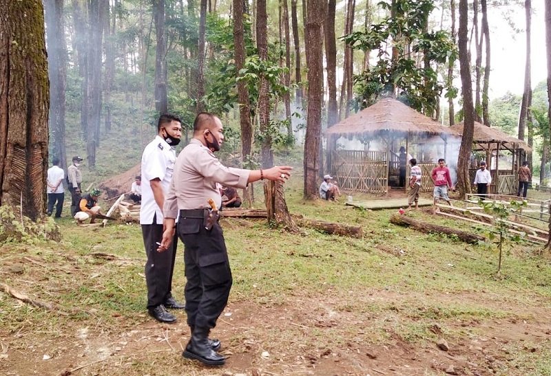Kapolsek Bungaya Polres Gowa AKP Misbahuddin, S.Sos didampingi personel Polsek Bungaya melakukan kunjungan ke posko pembangunan Kampung Rewako Desa Bissoloro, Kecamatan Bungaya, Kabupaten Gowa, Kamis (23/07/2020).