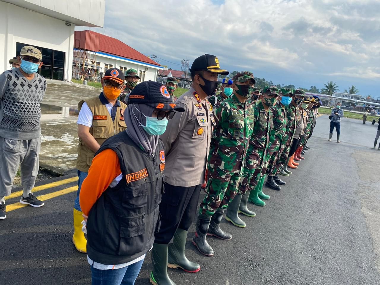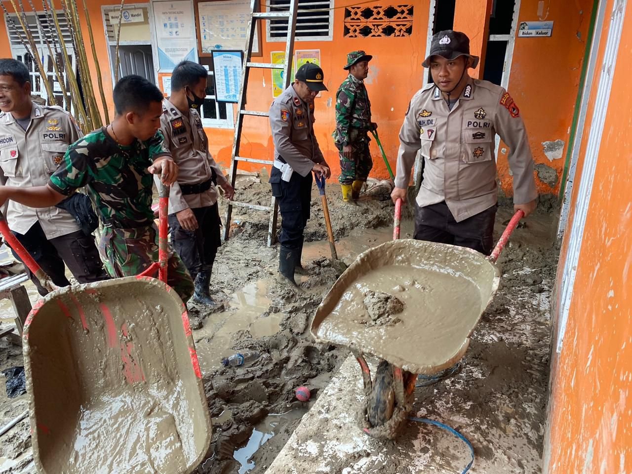 Hal itu dilakukan bersama tim Brimob karena tidak menutup kemungkinan penyebaran virus penyakit dan virus corona ditempat kerumunan terutama di tempat pengungsian dampak banjir bandang.
