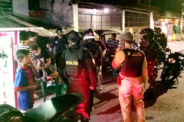 Dalam rangka Adaptasi Kebiasaan Baru dan menjaga Kamtibmas pasca tawuran kelompok, Polres Pelabuhan Makassar bersama Tripika Ujung Tanah menggelar apel gabungan, Minggu (26/07/2020) malam bertempat di Jalan Barukang Raya (depan Masjid Nurul huda) Kelurahan Gusung, Makassar.