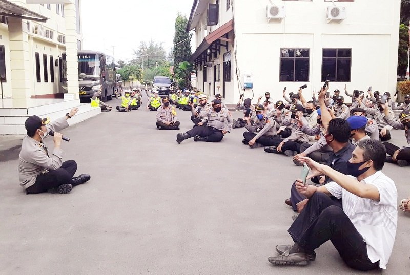 Dari pantauan media ini di Mapolres Kepulauan Selayar terlihat seluruh personel duduk bersila di lapangan apel termasuk PJU dan seluruh perwira. Begitu pula Kapolres Kepulauan Selayar AKBP Temmanganro machmud, SIK, MH dalam memberikan arahan juga dengan posisi duduk bersila dihadapan para personel Polres Kepulauan Selayar.